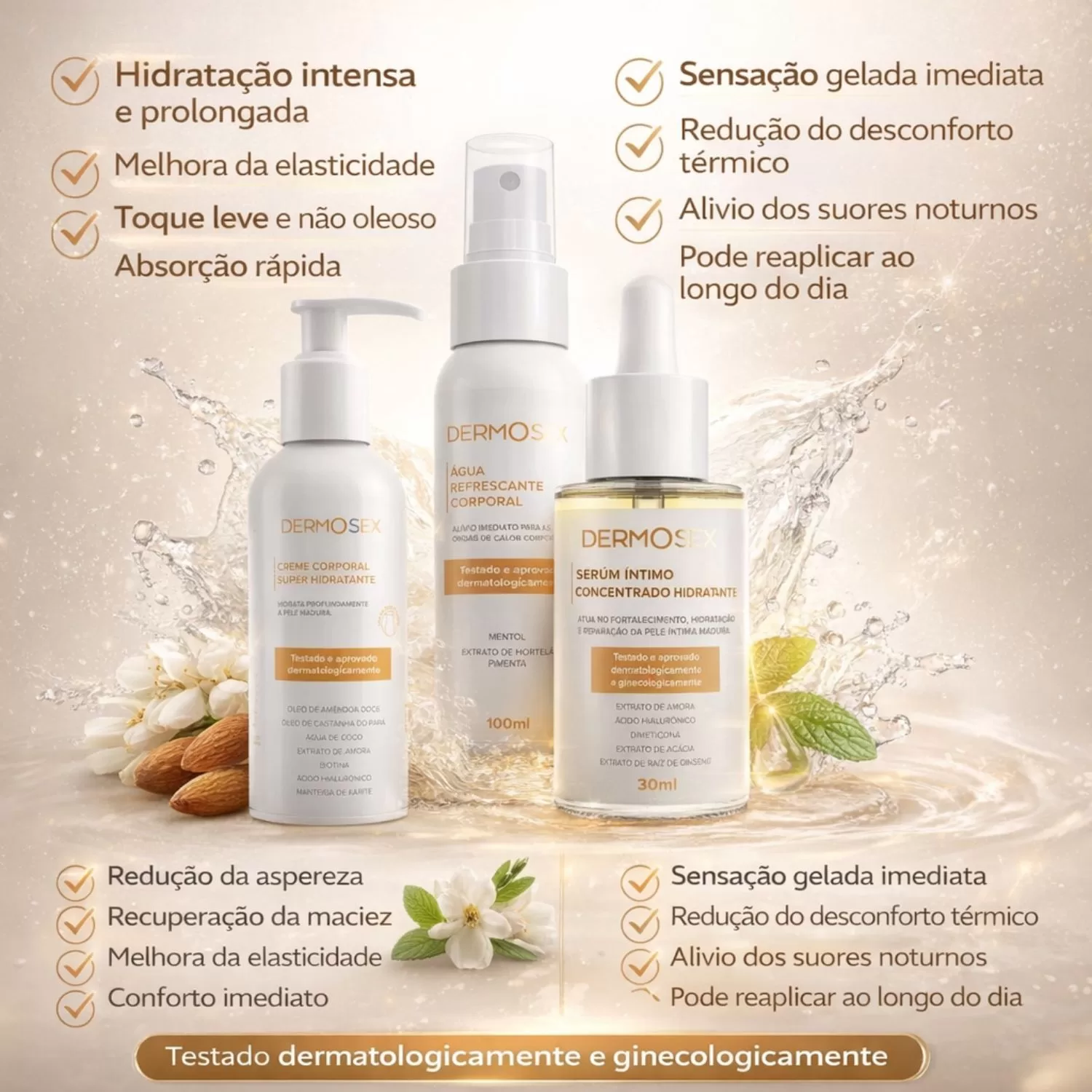 O Kit Dermosex foi desenvolvido para cuidar da mulher de forma completa nessa fase da vida.